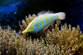 The Orange-spotted filefish is a fish that few people know about on the top of their head. These fish rely solely on the coral reefs in the Indo-Pacific Oceans. As from the picture above, you can see how the fish is mostly a teal blue with yellow spots and stripes all around it. It’s main food source is Acropora polyps, which is a type of stone coral. Not only do they use this coral for food, but they also use it for protection, shelter, and mating purposes. While filefish swim around the coral, the chemicals from the Acropora are absorbed by the fish so that the fish cannot be distinguished by predators, like cod. Eating the coral also masks the smell of the fish from others. The coral also provides protection as shelter as the fish can camouflage themselves, as the coral is bright in colors as well. The coral can also be used as shelter just by being a home for the fish. The filefish have nests inside the coral that they live in and also mate and reproduce in. The coral provides protection and shelter for young filefish. Without these corals, the filefish would lose the most valuable resource it has. As the fish is quite small, it is not possible for it to migrate to new areas.
